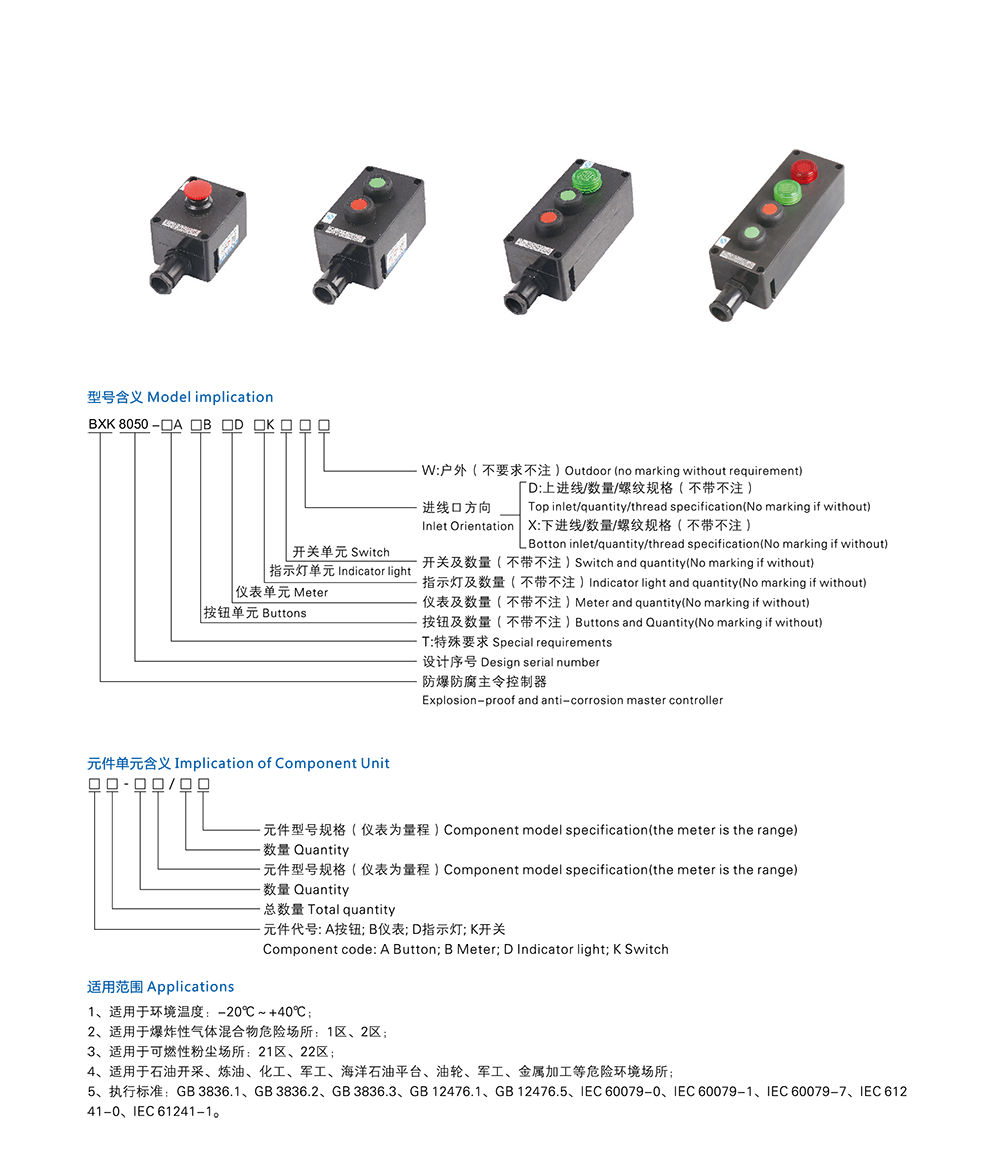 BXK8050系列防爆防腐操作柱(lB、lIC、DIP)
