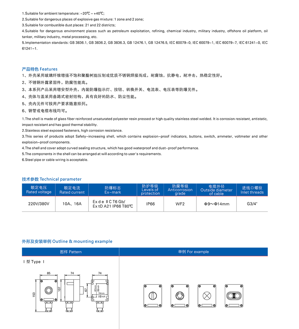 BXK8050系列防爆防腐控制箱(IIB、IC、DIP)